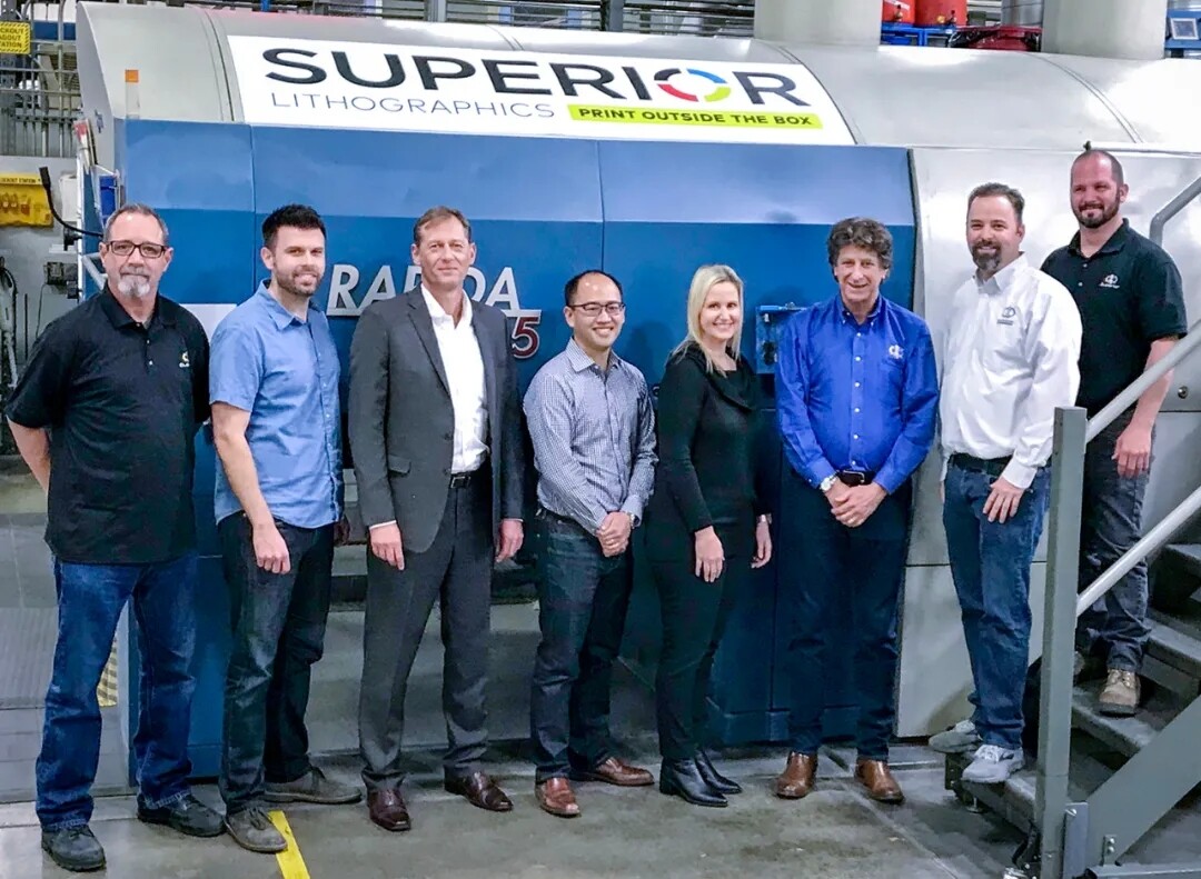 Superior Litho公司管理團(tuán)隊(duì)成員與高寶美方代表于洛杉磯一起調(diào)試新款利必達(dá)145